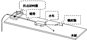 1、实验题 某学习小组做探究“功与物体速度变化关系”的实验(如图,已平衡好小车的摩擦),图中小车是在一条橡皮筋作用下弹出并沿木板滑行,这时,橡皮筋对小车做的功记为W0。当用2条、3条……完全相同的橡皮筋并在一起进行第2次、第3次……实验时,使每次实验中每条橡皮筋伸长的长度都相等。实验中小车获得的速度由打点计时器所打的纸带测出。