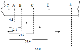(2)(5分)在该实验中,小车拖着纸带通过记录下的运动情况如图所示,图中O、A、B、C、D、E为连续选定的计数点,相邻计数点间的时间间隔是0.10s,标出的数据单位是cm,则在打C点时小车的速度是______m/s。