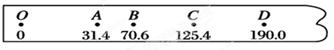 纸带上O点为重锤自由下落时的打点起点(O、A间有点未画出),选取的计数点A、B、C、D依次间隔一个点(图中未画出),各计数点与O点距离如图所示,单位为mm,重力加速度为9.8m/s2,则:(结果保留三位有效数字)