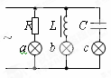5、选择题 如图所示,三只完全相同的灯泡a、b、c分别与电阻R、电感L、电容C串联,再将三者并联,接在220V,50Hz的交变电源两端,三只灯泡亮度相同。如果将电源改为220V,60Hz的交变电源,则( )