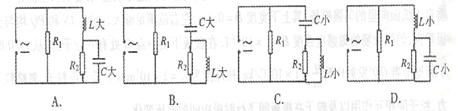 1、选择题 某电源输出的电流既有交流成分又有直流成分,而我们只需要稳定的直流,下列设计的电路图中,能最大限度使电阻R2获得稳定直流的是(? )