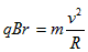 设其半径为R,由洛伦兹力公式和牛顿第二定律,有: