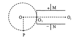 5、计算题 (18分)如图所示,在真空中,半径为R的虚线所围的圆形区域内只存在垂直纸面向外的匀强磁场。有一电荷量为q、质量为m的带正电粒子,以速率V0从圆周上的P点沿垂直于半径OOl并指向圆心O的方向进入磁场,从圆周上的O1点飞出磁场后沿两板的中心线O1O2射入平行金属板M和N, O1O2与磁场区域的圆心O在同一直线上。板间存在匀强电场,两板间的电压为U,两板间距为d。不计粒子所受重力。求:
