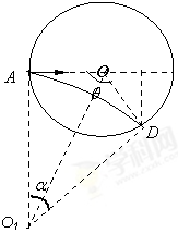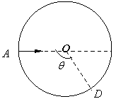 2、计算题 (12分)如图,一半径为R的圆表示一柱形区域的横截面(纸面),O为圆心。在柱形区域内加一方向垂直于纸面向外的匀强磁场,一质量为m、电荷量为+q的粒子沿图中直径从圆上的A点射入柱形区域,在圆上的D点离开该区域,已知图中