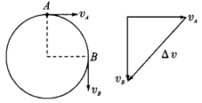 1、计算题 一质点做匀速圆周运动,其半径为2m,周期为3.14 s,如图所示,求质点从A点转过90°到达B点的速度变化量。