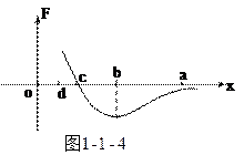 5、填空题 如图1-1-4,甲分子固定在坐标原点o,乙分子位于x轴上,甲分子对乙分子的作用力与两分子间距离的关系如图中曲线所示,F>0为斥力,F<0为引力。a、b、c、d为x轴上四个特定的位置,现把乙分子从a处由静止释放,则(?)
