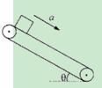 4、计算题 (8分)如图所示,一质量为1kg的物体放于倾角为θ=30°的传送带上,随传送带一起沿斜面向下做匀加速运动,求下列情况下物体所受的摩擦力。(g=10m/s2)