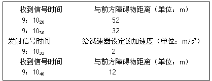 (2)应启用另一个备用减速器。再经过3s分析数据和1s接收时间,探测器在9:1044执行命令,此时距前方障碍物距离s=2m。设定减速器加速度为,则有