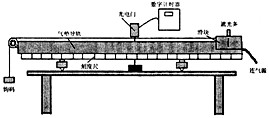 ⑵已知遮光条的宽度d=0.52cm,实验时将滑块从图示位置由静止释放,由数字计时器读出遮光条通过光电门的时间t=1.2×10-2s,则滑块经过光电门时的瞬时速度是?m/s,在本次实验中还需要测量的物理量有:钩码的质量m、?和?(文字说明并用相应的字母表示)。