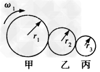 2、选择题 如图所示,甲、乙、丙三个轮子依靠摩擦传动,相互之间不打滑,其半径分别为r1、r2、r3。若甲轮的角速度为ω1,则丙轮的角速度为?