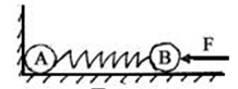 3、选择题 如图所示,质量均为m的A、B两球之间系一根轻弹簧,放在光滑水平面上,A球紧靠竖直墙壁,今用力F将B球向左推压弹簧,平衡后,突然撤去F的瞬间,下列说法正确的是( )