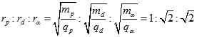 C.运动半径之比rp∶rd∶rα=1∶1∶2