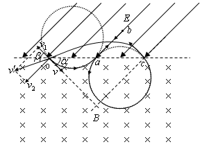 本题解析:粒子的运动轨迹如图,先是一段半径为R的1/4圆弧到a点,接着恰好逆电场线匀减速运动到b点速度为零再返回a点速度仍为v,再在磁场中运动一段3/4圆弧到c点,之后垂直电场线进入电场作类平抛运动。