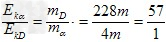 (3)设中子与质子的质量均为m,根据α衰变的法则,新原子核D的质量数为232 -4= 228,其质量mD= 228m,α粒子的质量mα=4m,
