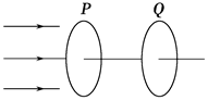 5、选择题 如图所示,让自然光照到P偏振片上,当P、Q两偏振片的透光方向间的夹角为以下哪些度数时,透射光的强度最弱( ).