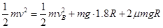 情况二:小球b上滑至四分之一圆轨道的Q点时,速度减为零,然后滑回D。则由动能定理有