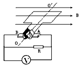 1、计算题 如图,匀强磁场的磁感应强度B=0.5T,边长为L=10cm的正方形线圈abcd共100匝,线圈电阻r=1Ω,线圈绕垂直于磁感线的轴匀速转动,ω=2rad/s,外电路电阻R=4Ω。求:
