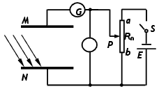 5、计算题 如图所示是测定光电效应产生的光电子比荷的简要实验原理图,两块平行板相距为d,其中N为金属板,受紫外线照射后,将发射沿不同方向运动的光电子,形成电流,从而引起电流计G的指针偏转,若调节R0逐渐增大极板间电压,可以发现电流逐渐减小,当电压表示数为U时,电流恰好为零。切断开关,在MN间加垂直于纸面的匀强磁场,逐渐增大磁感强度,也能使电流为零,当磁感强度为B时,电流也恰为零。则光电子的比荷为多少?