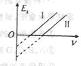 1、选择题 甲、乙两种金属发生光电效应时,光电子的最大初动能与入射光频率间的函数关系分别如图中的I、II所示。下列判断正确的是