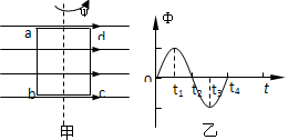 4、选择题 如图所示,一闭合矩形线圈abcd绕垂直于磁感线的固定轴oo"匀速转动,线圈平面位于如图(甲)所示的匀强磁场中,通过线圈内的磁通量Φ随时间的变化规律如图(乙)所示,下列说法正确的是( ? ?)