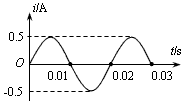 3、填空题 如图是某正弦式电流的图象,则此正弦式电流的周期为__________s,电流的峰值为__________A。