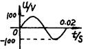 3、填空题 某交流电压如图所示,则此电压的有效值为 V;如将辉光电压(超过此电压氖管就发光,低于此电压氖管熄灭)为50