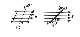 4、选择题 如图a所示,一矩形线圈abcd放置在匀强磁场中,并绕过ab、cd中点的轴OO′以角速度