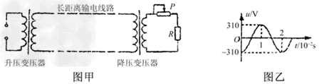 2、计算题  由甲地向乙地输电,甲地有升压变压器,乙地有降压变压器。连接两变压器的输电线的总电阻为5Ω,如果降压变压器的变压比为10:1,输出功率为22kw,输出电流为100A,求升压变压器的输出电压。