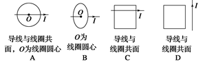 5、选择题  如图所示,用导线做成圆形或正方形回路,这些回路与一直导线构成几种位置组合(彼此绝缘),下列组合中,切断直导线中的电流时,闭合回路中会有感应电流产生的是(  )