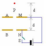 4、选择题 如图22-1所示,A、B为平行金属板,两板相距为d,分别与电源两极相连,两板的中央各有小孔M、N。今有一带电质点,自A板上方相距为d的P点由静止自由下落(P、M、N三点在同一竖直线上),空气阻力不计,到达N点时速度恰好为零,然后按原路径返回。若保持两板间的电压不变,则: