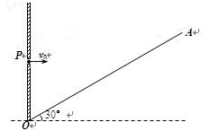 4、计算题 (9分) 如图所示,在倾角为30°的斜面OA的左侧有一竖直档板,其上有一小孔P,OP=0.5m.现有一质量m=4×10-20kg、电荷量q=+2×10-14C的粒子,从小孔以速度v0=3×104m/s水平射向磁感应强度B=0.2T、方向垂直纸面向外的圆形磁场区域,且在飞出磁场区域后能垂直打在OA面上,粒子重力不计.求: