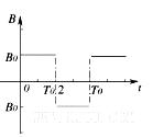 3、选择题 在第一象限(含坐标轴)内有垂直xoy平面周期性变?化的均匀磁场,规定垂直xoy平面向里的磁场方向为正.磁场变化规律如图,磁感应强度的大小为B0,变化周期为T0.某一正粒子质量为m、电量为q在t=0时从0点沿x轴正向射入磁场中。若要求粒子在t=T0时距x轴最远,则B0的值为
