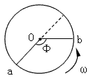4、选择题 如图所示为纸质圆筒,以角速度ω绕垂直纸面的轴O高速转动,有一颗子弹沿直径穿过圆筒,若子弹在圆筒转动不到半周时,在圆筒上留下a、b两个弹孔,已知aO与bO夹角为Φ,圆筒直径为d,则子弹的速度为