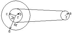 5、选择题 如图所示,为一皮带传动装置,右轮的半径为r,a是它边缘上的一点,左侧是一轮轴,大轮的半径为4r,小轮的半径为2r,b点在小轮上,到小轮中心的距离为r,c点和d点分别位于小轮和大轮的边缘上,若在传动过程中,皮带不打滑,则