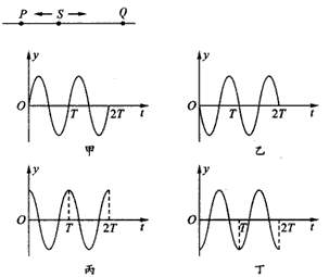 3、选择题 如图所示,波源S从平衡位置y=0开始振动,运动方向竖直向上(y轴的正方向),振动周期T=0.01s,产生的机械波向左、右两个方向传播,波速均为v= 80 m/s。经过一段时间后,P、Q两点开始振动,已知距离SP=1.2 m、SQ=2.6 m,若以Q点开始振动的时刻作为计时的零点,则关于下面的四幅振动图像说法正确的是
