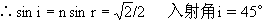 由图可求得 光束在AD面的折射角 r =30°