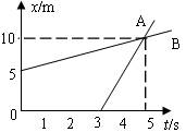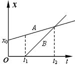 5、选择题 如图所示,沿同一直线运动的物体A、B,其相对同一参考系的位置x随时间t变化的函数图像可知(? )