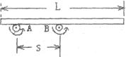 2、计算题 如图所示,半径为r=20cm的两圆柱A和B,靠电动机带动按同方向均以8rad/s的角速度匀速转动,两圆柱的转动轴互相平行且在同一平面内,转动方向图中已标出,质量均匀的木棒放置其上,重心开始恰在B的上方,棒和圆枉体间的动摩擦因数为0.16,图中s=1.6m,L>2m,重力加速度取l0m/s2,从捧开始运动到重心恰在A上方需要时间为多少?