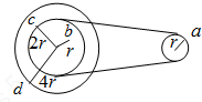 1、选择题 如图所示,为一皮带传动装置,右轮半径为r,a是它轮缘上的一个点.左侧是一轮轴,大轮的半径是4r,小轮的半径是2r,b点在小轮上,它到轮中心的距离为r.c点和d点分别位于小轮和大轮的边缘上.若传动中不打滑,则下列说法正确的是( )