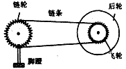 5、填空题 如图所示是自行车传动装置的示意图,若脚蹬匀速转一圈需要时间T,已数出链轮齿数为48,飞轮齿数为16,要知道在此情况下自行车前进的速度,还需要测量的物理量是_____________(填写该物理量的名称及符号)。用这些量表示自行车前进速度的表达式为v=___________________。