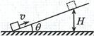 5、选择题 一物块沿倾角为θ的斜坡向上滑动。当物块的初速度为v时,上升的最大高度为H,如图所示;当物块的初速度为