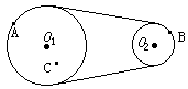 1、选择题 如图O1,O2是皮带传动的两轮,O1半径是O2的2倍,O1上的C点到轴心的距离为O2半径的1/2,则