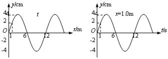 ,x=1.0m处的质元的振动图象看出t=0和t=6s时该质元应在平衡位置,而波形图上该质点并未在平衡位置,故AB错误,t=3s时该质元在正的最大位移处,显然波形图上不是这样,C错误,t=5s时,该质元朝平衡位置运动,再看波形图如果波向右传播恰好满足这个条件;故D正确;