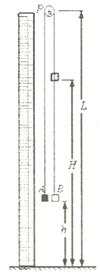 2、实验题  物理实验小组利用如图所示的自制实验装置进行探究实验.沿竖直墙面固定一根刻度尺,使刻度尺的零刻度与水平地面重合;在墙上,距离地面L的P点固定一小定滑轮,用一根轻质尼龙丝线绕过定滑轮,两端拴接质量不等的两个物体A、B.开始时,将两物体处于相等高度位置,丝线绷直;通过刻度尺,记录A、B两物体距离地面的高度为h;然后,同时由静止释放A、B物体,较重的A物体竖直下落与地面相碰后静止,较轻的B物体仍向上运动,观察B物体所能到达的最大高度为H=2.5h,并记录下来
