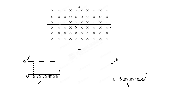 ,同时在y轴方向加匀强电场,其电场强度的变化规律如图丙所示(沿y轴正方向电场强度为正),要使带电粒子能够在运动一段时间后回到原点,则E的取值应为多少?
