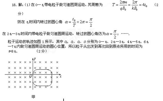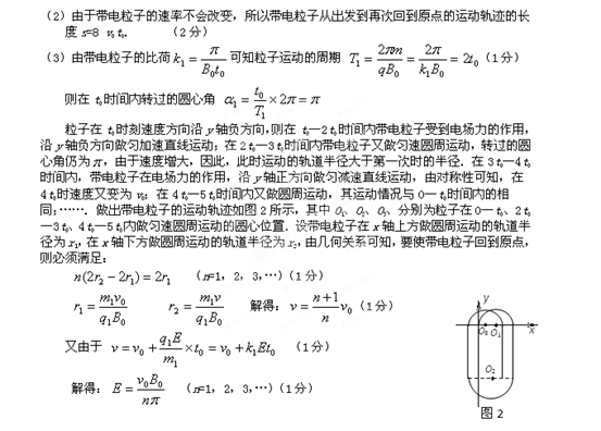 ,同时在y轴方向加匀强电场,其电场强度的变化规律如图丙所示(沿y轴正方向电场强度为正),要使带电粒子能够在运动一段时间后回到原点,则E的取值应为多少?