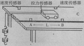 本题解析:小车在钩码的作用下拖动纸带在水平面上做加速运动,通过速度传感器可算出A B两点的速度大小,同时利用拉力传感器测量出拉小车的力,从而由AB长度可求出合力做的功与小车的动能变化关系.