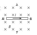 3、计算题  如图所示,有一匀强磁场,磁感应强度B=1T。有一段长L="0.1" m的导线垂直磁场方向放置,当导线中通以I=0.5A的水平向右的电流时,