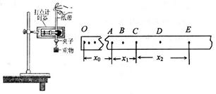 2、实验题 某实验小组利用图示装置验证机械能守恒定律。实验中先接通电磁打点计时器的低压交流电源,然后释放纸带。打出的纸带如图所示,选取纸带上打出的连续五个点A、B、C、D、E,测出。A点距起点O的距离为,点A、C间的距离为