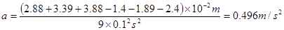 点评:难度较小,掌握计算加速度的逐差法,灵活应用中间时刻的瞬时速度等于平均速度计算某一点的瞬时速度